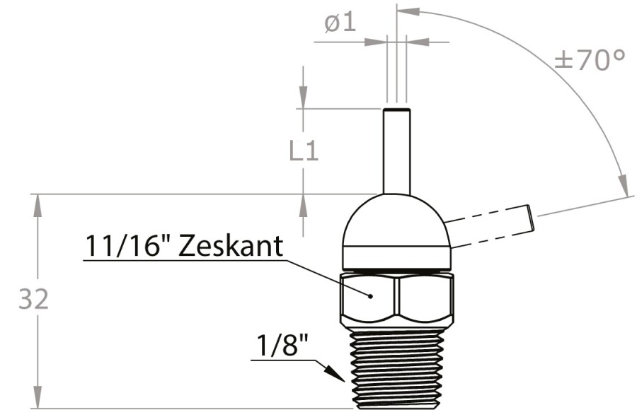 Hogedruk nozzles maken het mogelijk koelmiddel of lucht met maximaal 70 bar naar het gereedschap te brengen. Deze CT-uitvoeringen zijn leverbaar in 4 verschillende doorlaatdiameters (D) en spuitmondlengtes (L), tevens voorzien van 1/8" NPT aansluiting.
