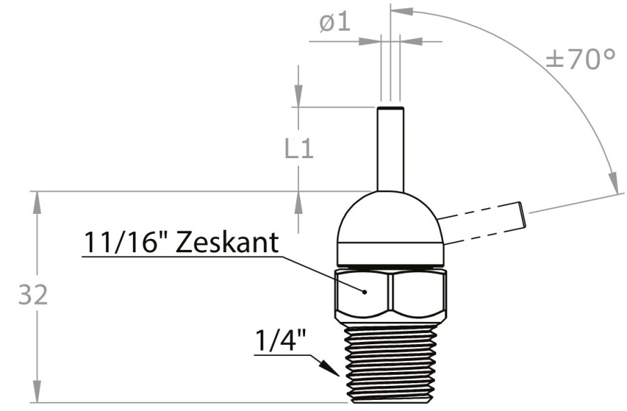 Hogedruk nozzles maken het mogelijk koelmiddel of lucht met maximaal 70 bar naar het gereedschap te brengen. Deze CT-uitvoeringen zijn leverbaar in 4 verschillende doorlaatdiameters (D) en spuitmondlengtes (L), tevens voorzien van 1/4" NPT aansluiting.