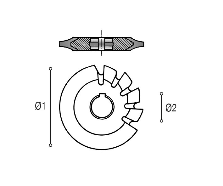 HSS-Co8 Moduulfrees van het merk Carmon. Deze frees is volgens UNI 4501-norm vervaardigd en speciaal uitgevoerd om tandwielen mee te maken. Ze worden uitgevoerd in 8 verschillende uitvoeringen afhankelijk van het aantal te produceren tanden.