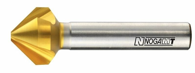 This are NogaMT HSS Countersinks provided with a TiN coating. Performed according to DIN 335C with 3 flutes in 90° and all have a cylindrical shank. have a cylindrical shank. In standard HSS or provided with a TiN coating