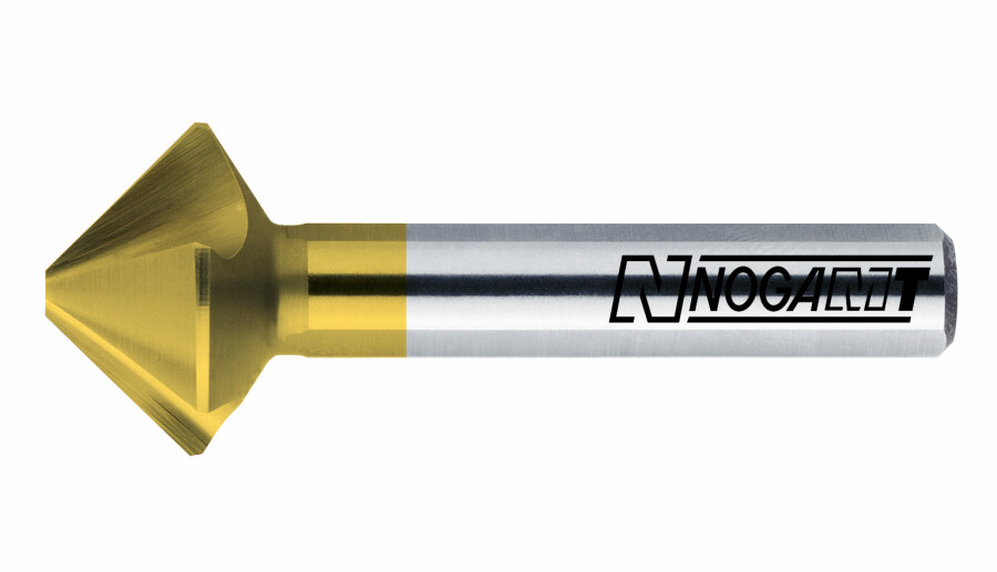 This are the new NogaMT HSS Countersinks with a special cutting flute geometry and provided with a TiN coating. They all have 3 unequal devided flutes! This VarioLine has a patented shaft (from D=8,3) which gives a 100% protection against slipping in the chuck.